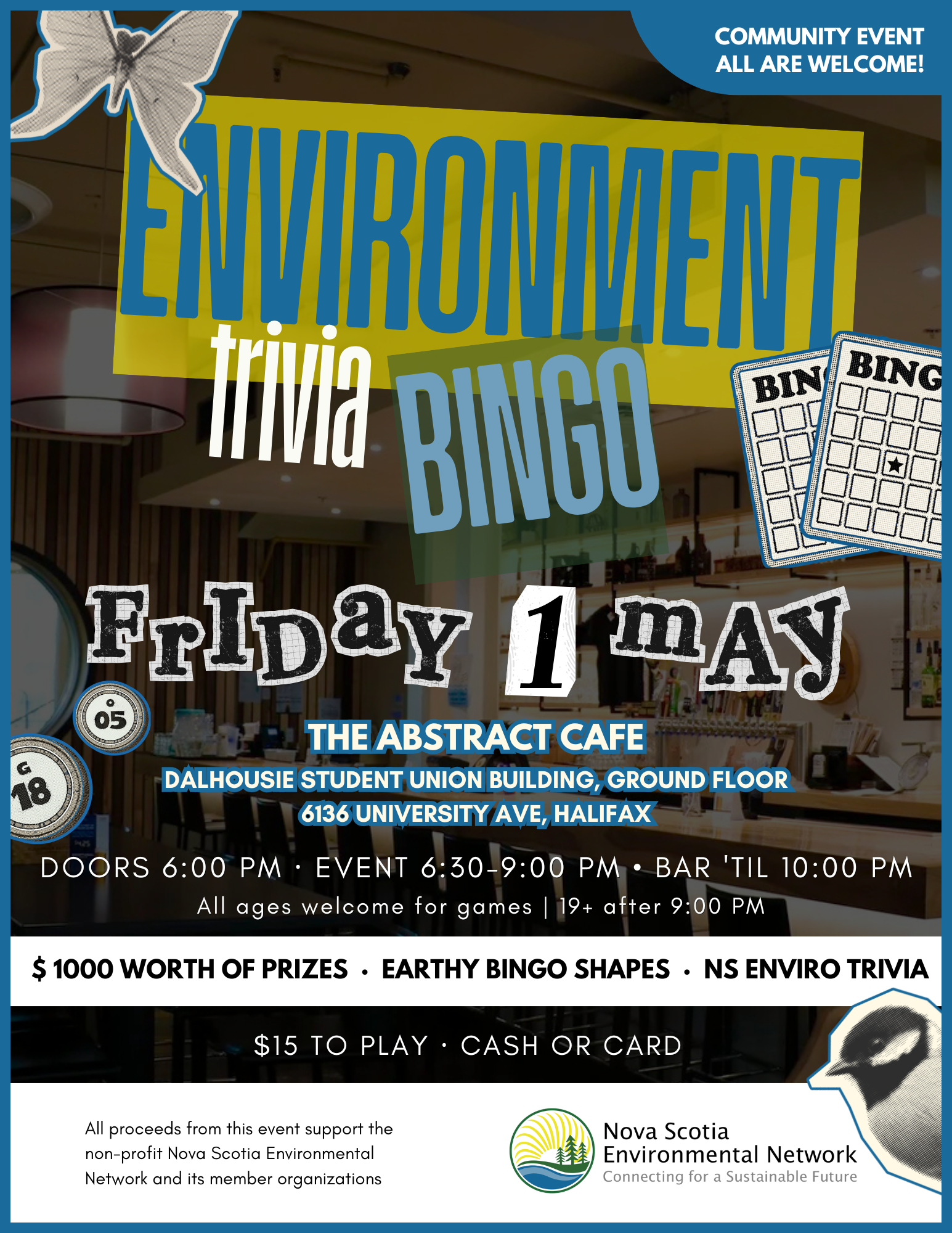 Join us at The Abstract Café in Halifax for a fun evening of environment-themed bingo. Plus! Break up the bingo with a riveting game of Nova Scotia Environmental Trivia!